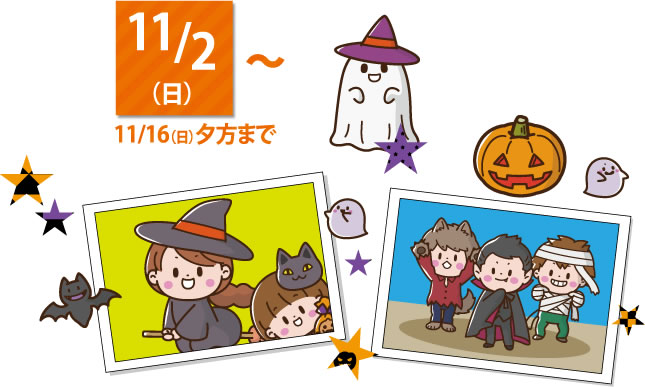 ここでご参加された皆さんの仮装した笑顔が集まるフォトアルバム展を開催します♪